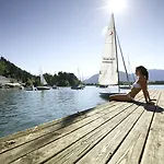 Das 4-Sterne-Hotel liegt in rund 25 Gehminuten Entfernung von einem privaten Strand und befindet sich im Skigebiet von Landskron. Das Robinson befindet sich in der Nähe von der Adler-Flugschau Burg Landskron, und zwar in ca. 2 km Entfernung. Besuchen Sie den See Ossiacher See, in ungefähr 5 Gehminuten Entfernung von der Unterkunft, und fühlen Sie sich in völliger Harmonie mit der Natur von Österreich. Das Automuseum TAF-TIMER ist ungefähr 3 km vom Hotel entfernt. Die Bushaltestelle Villach Sankt Andrae Seebruecke ist in unmittelbarer Nähe vom Robinson Landskron.